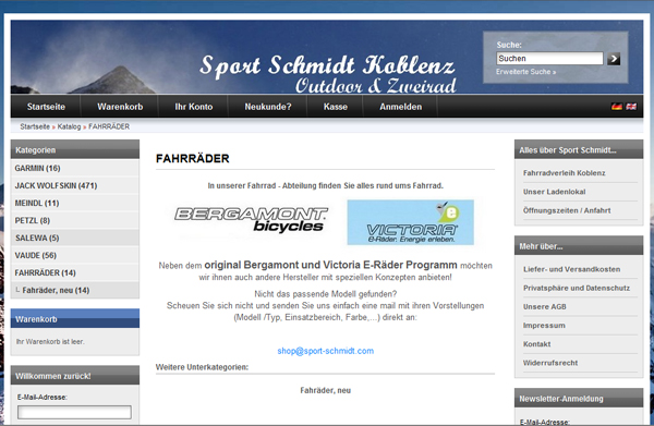 Der Onlineversand Sport Schmidt Koblenz hat uns die Aufgabe übertragen, den Online-Shop auf Basis von xtcModified eCommerce Shopsoftware einzurichten. Gleichzeitig wurde ein Warenwirtschaftssystem von uns integriert.